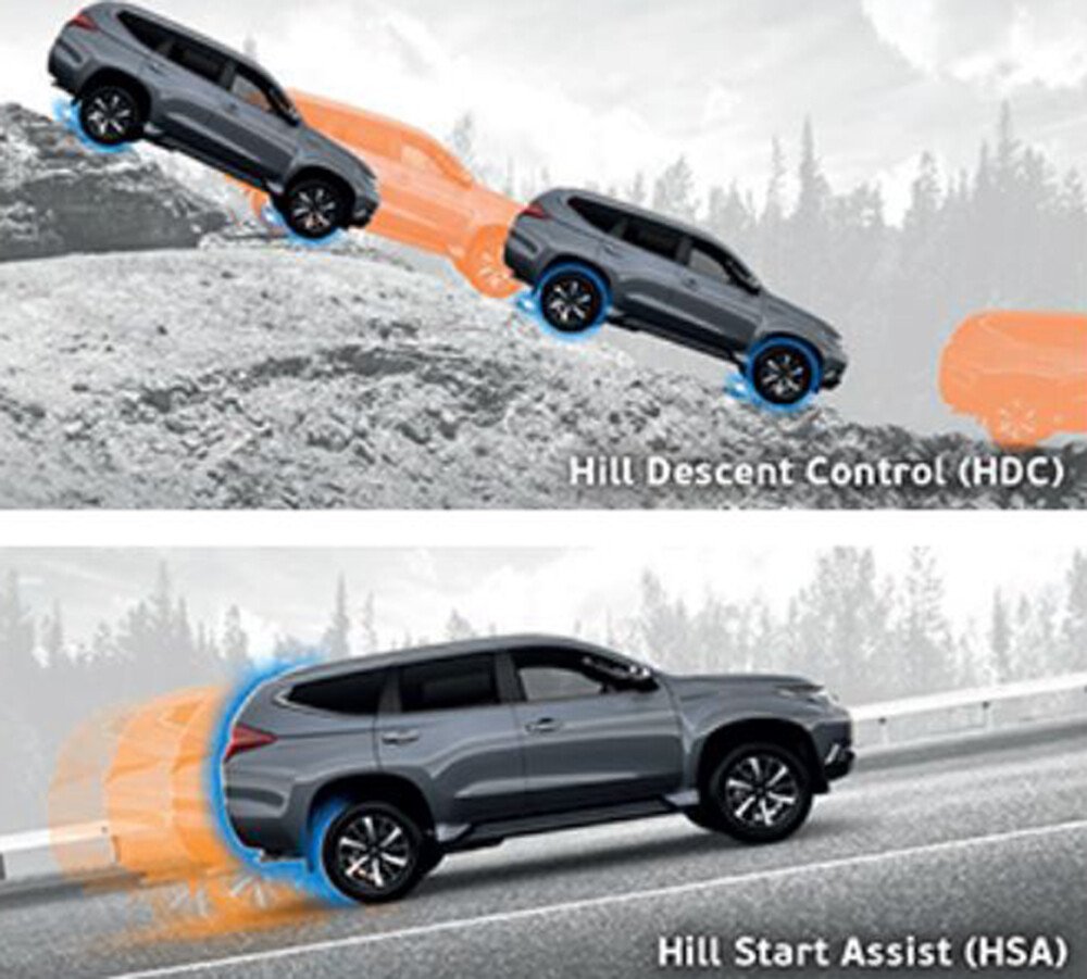 Hệ thống hỗ trợ khởi hành ngang dốc (Hill Start Assist – HSA) giúp xe không bị trôi về phía sau trong trường hợp dừng và khởi hành ở ngang dốc cao. Cùng với Hệ thống hỗ trợ xuống dốc (HDC), giúp xe sẽ từ từ lăn bánh một cách nhẹ nhàng và an toàn khi đang xuống dốc.